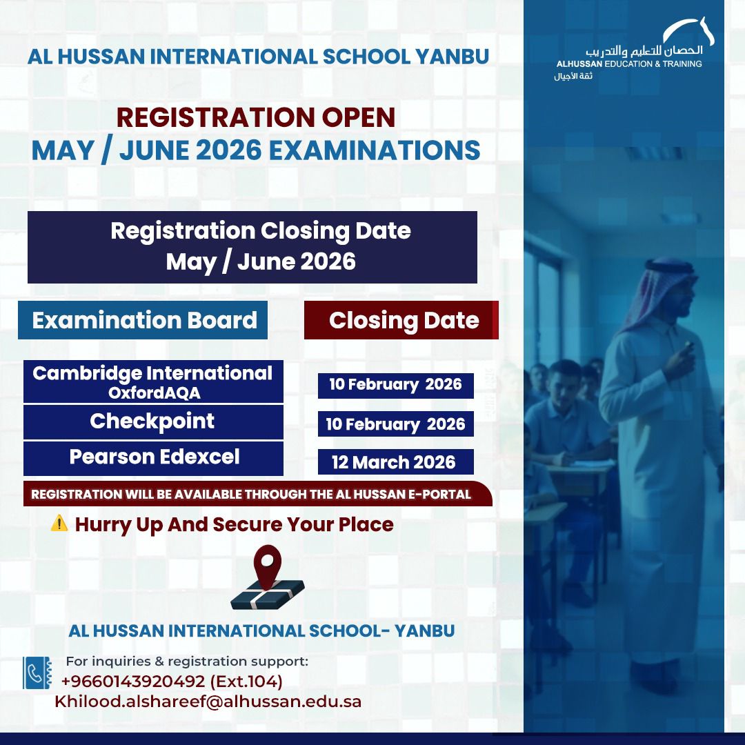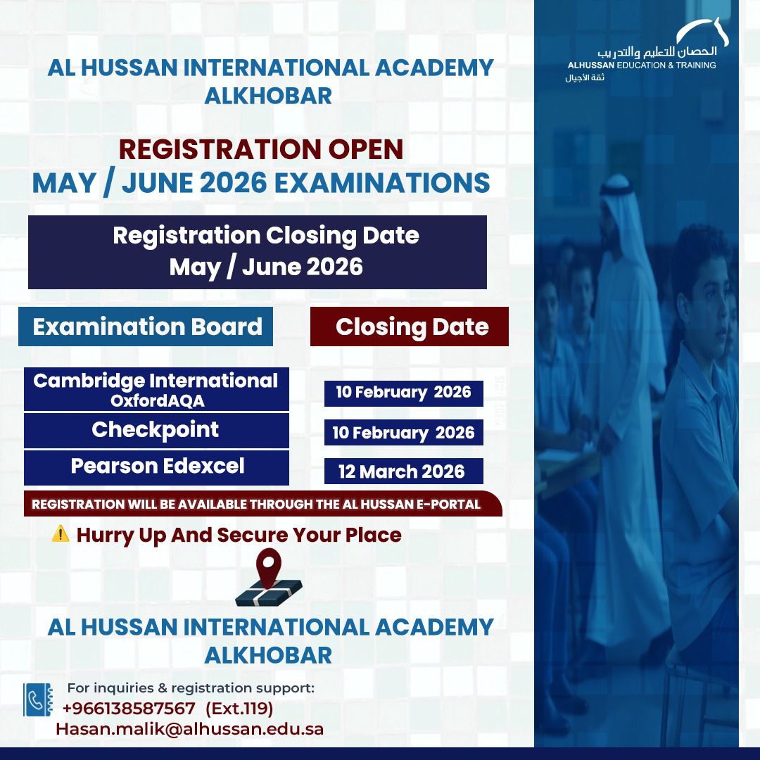 Registration is now open for the May / June 2026 examination session across Al Hussan Education & Training Group.