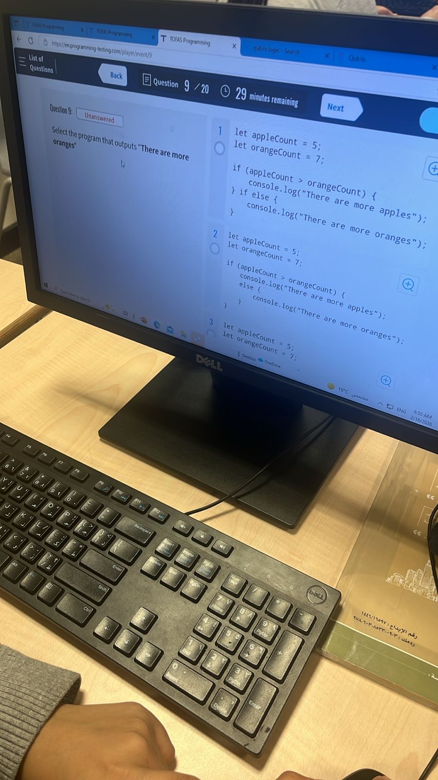 يواصل طلاب مجموعة الحصان للتعليم والتدريب، وبالتنسيق مع مركز الاختبارات والقبول الجامعي بالمجموعة، رحلتهم نحو التميز الرقمي، من خلال تنفيذ اختبار TOFAS – جزء البرمجة، بالتعاون مع الشركة اليابانية الرائدة SPRIX 🇯🇵