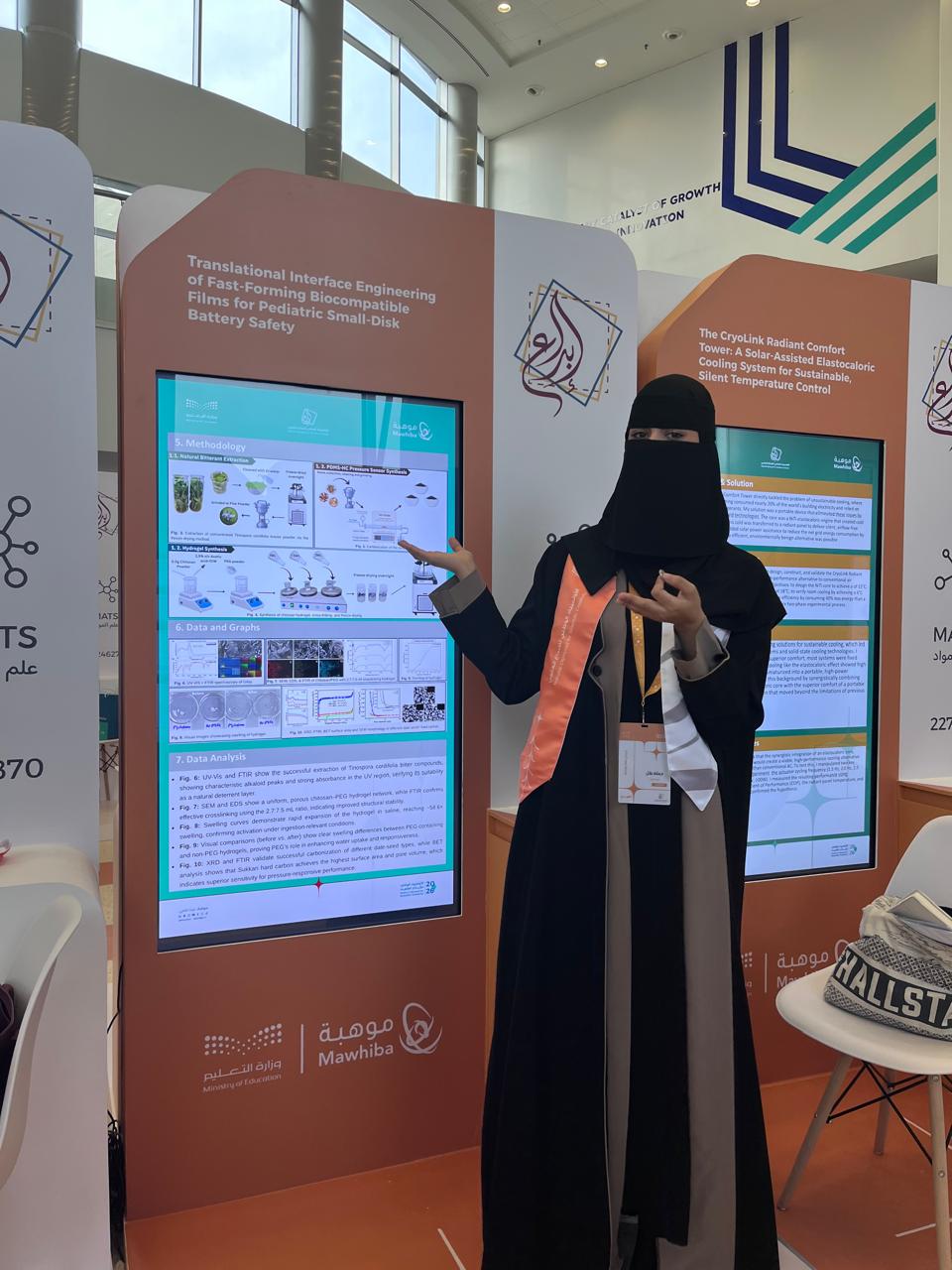 الطالب أحمد أمجد الرويلي، من مدارس التميز العلمي بمدينة عرعر، تحت إدارة مدارس الحصان، في مجال الهندسة الطبية الحيوية.